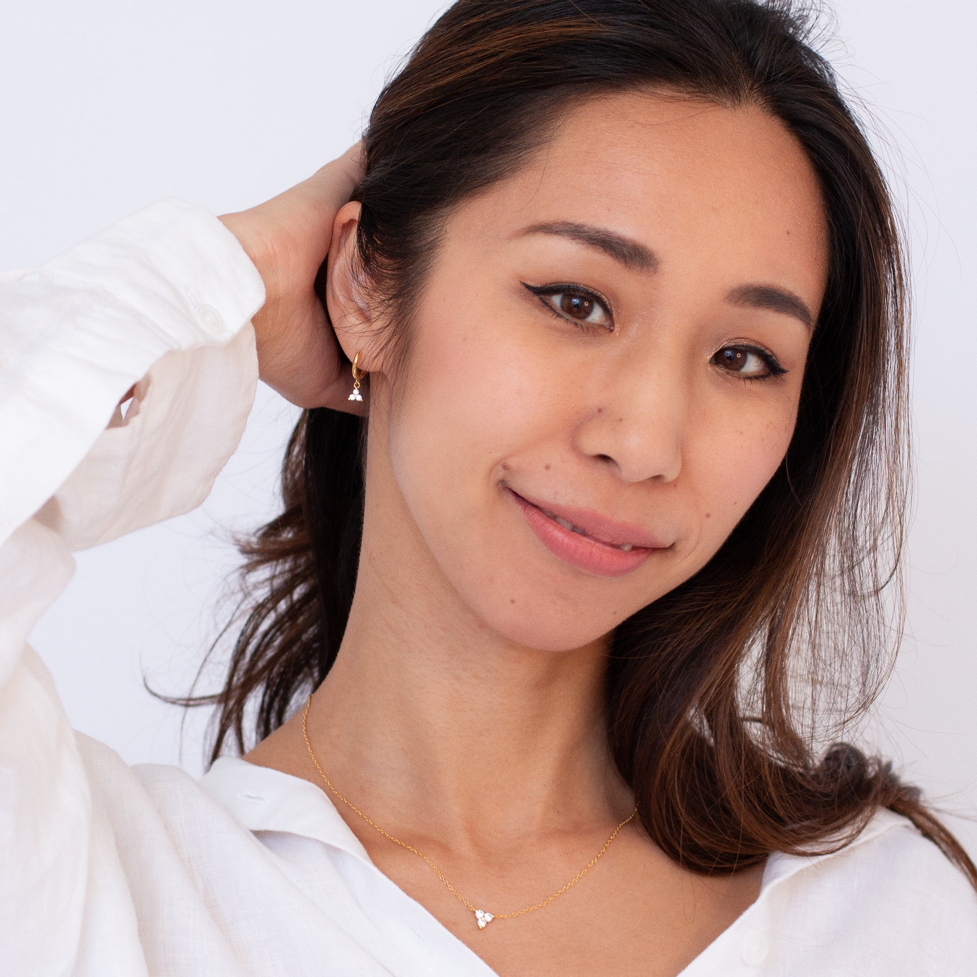 The Trinity Huggies are the perfect everyday earrings. Simple with just enough sparkle to stand out.