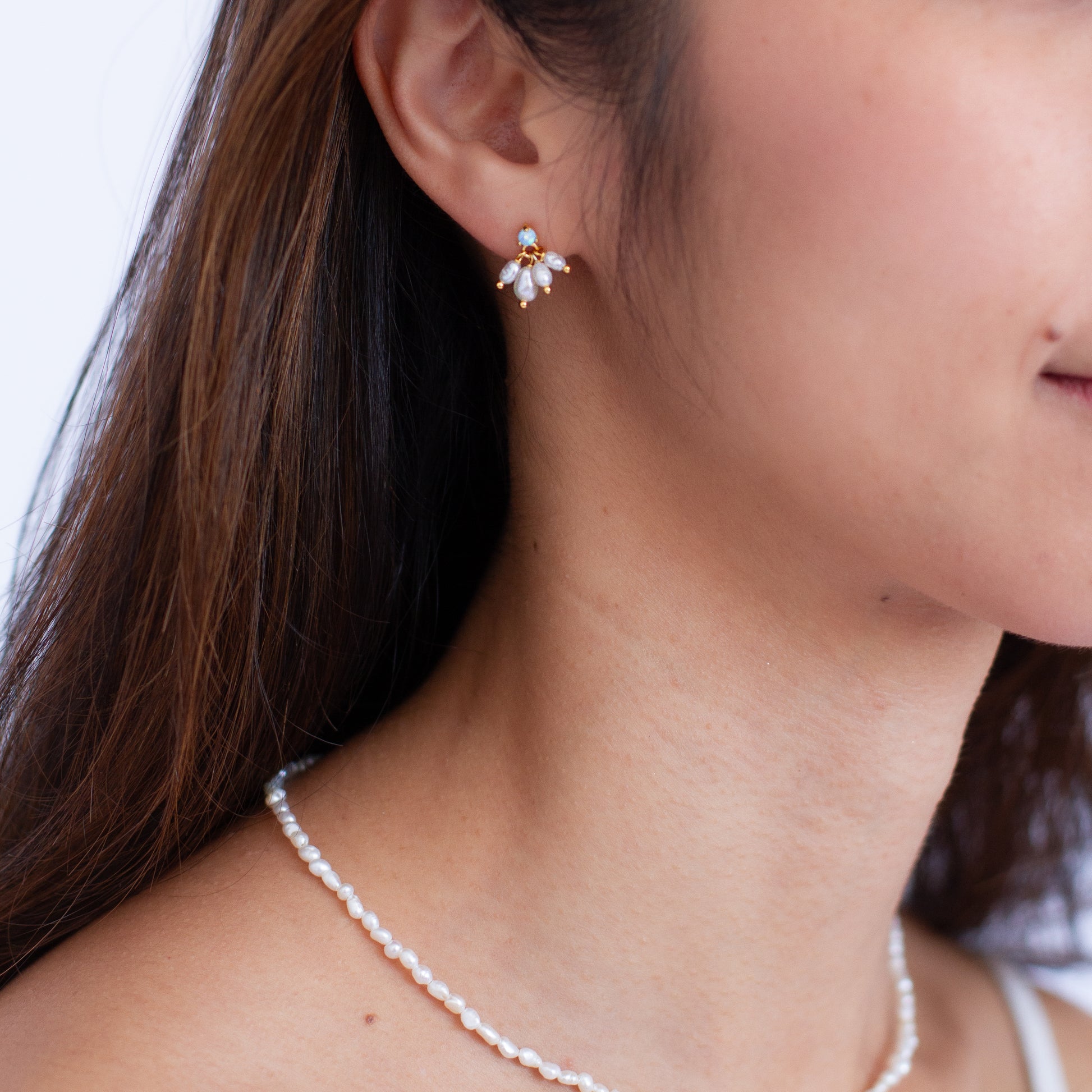 Delicate subtle beauty, the Winona Studs features a dainty opal and freshwater pearls. Perfect for those wanting a pair of studs to suit any occasion. They wear beautifully solo or paired with other LA SOLI pearl and opal pieces.
